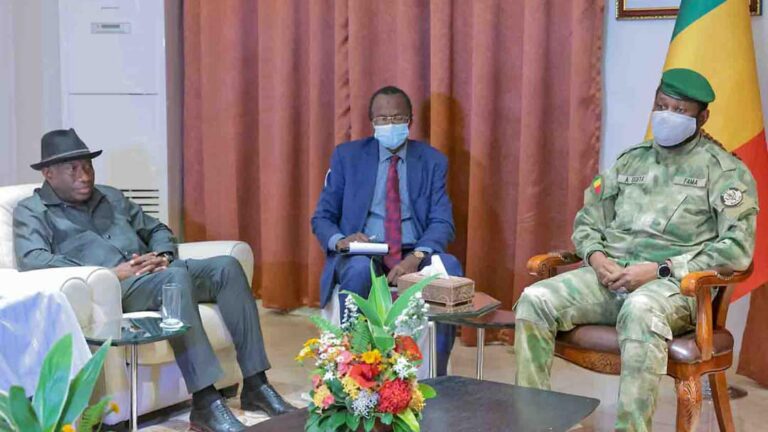 Koulouba. Le Colonel Assimi GOITA a reçu en audience Goodluck JONATHAN, médiateur de la CEDEAO