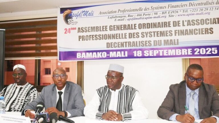 L’Association Professionnelle des Systèmes Financiers Décentralisés du Mali (APSFD-Mali) a tenu, ce jeudi 18 septembre 2025, sa 24ᵉ Assemblée générale ordinaire à l’hôtel Dunia, à l’ACI 2000. La cérémonie d’ouverture a enregistré la présence du Directeur général de la BNDA. À...