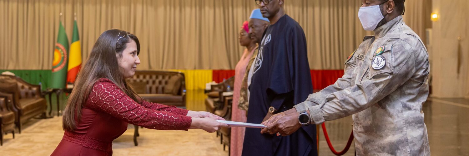 Le Président de la Transition, le Général d’armée Assimi Goïta a reçu, hier au Palais de Koulouba, les lettres de créance par lesquelles, la République de Cuba, l’Union européenne, le Ghana et l’État du Qatar accréditent leurs ambassadeurs désignés auprès de notre pays. Il s’agit successivement de Mme Hernandez Fonseca Viviana, Alberto Cerezo, Umar Sanda Ahmed et Ahmed Turki Ahmed Al Turki Al-Subaie. Ces nouveaux diplomates ont été introduits auprès du Chef de l’État par le ministre des Affaires étrangères et de la Coopération internationale, Abdoulaye Diop. C’était en présence des plus proches collaborateurs du Général d’armée, Assimi Goïta.